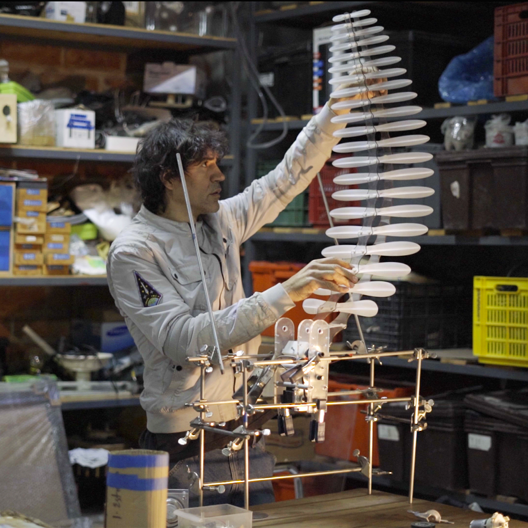 “From the previous results, we decided to design another type of mechanism inspired by the shape of the Pennatulacea coral (sea feather). This design optimizes the use of subtle currents to capture food. Thanks to the main lever's length, which transmits oscillatory movements to a bidirectional generator, the energy required for the device is achieved. The mechanical design makes the main structure work like a spine that tilts with the force of water, keeping the tip of the ridge erect. This way, energy can be efficiently acquired.”
